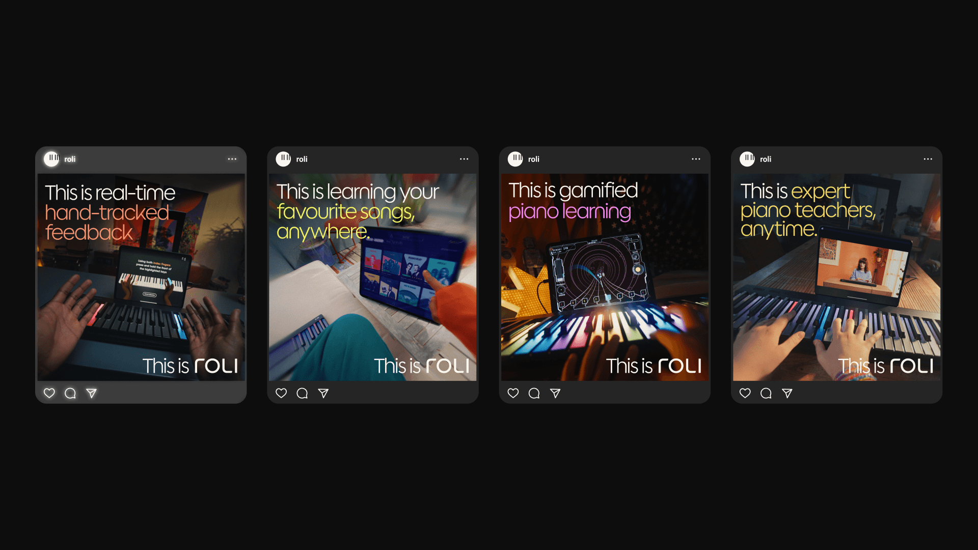 Roli asked us to create something they can own that allows them to differianciate themselves in a market where everything looks the same. After reserach it was clear to us that the piano lesson had changed and was no longer something that needed to be ridged.This isn’t just about selling a tool it’s about building a world people want to learn inside.Our approach treats ROLI’s social channels as more than product showcases. They become a creative space: part classroom, part playground, part culture hub. It's surreal, its magical.